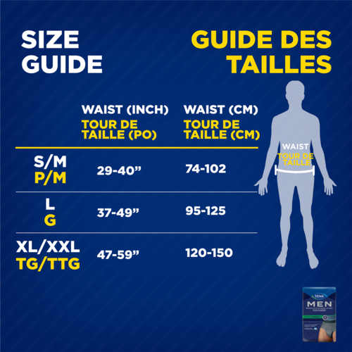 TENA Men™ Maximum Plus Protective Underwear is designed to look and feel like regular underwear while delivering reliable protection against moderate to heavy bladder leakage. This dark gray color pull up underwear features leg elastics to ensure all-day protection and ease of use, while its tailored fit is specifically engineered for the male anatomy. Equipped with fully Breathable Technology that helps maintain the skin's natural moisture balance, along with Triple Protection for dryness, softness, and leak security. Its super absorbent core locks in liquid and neutralizes odors instantly—providing all-day comfort, confidence, and discretion.